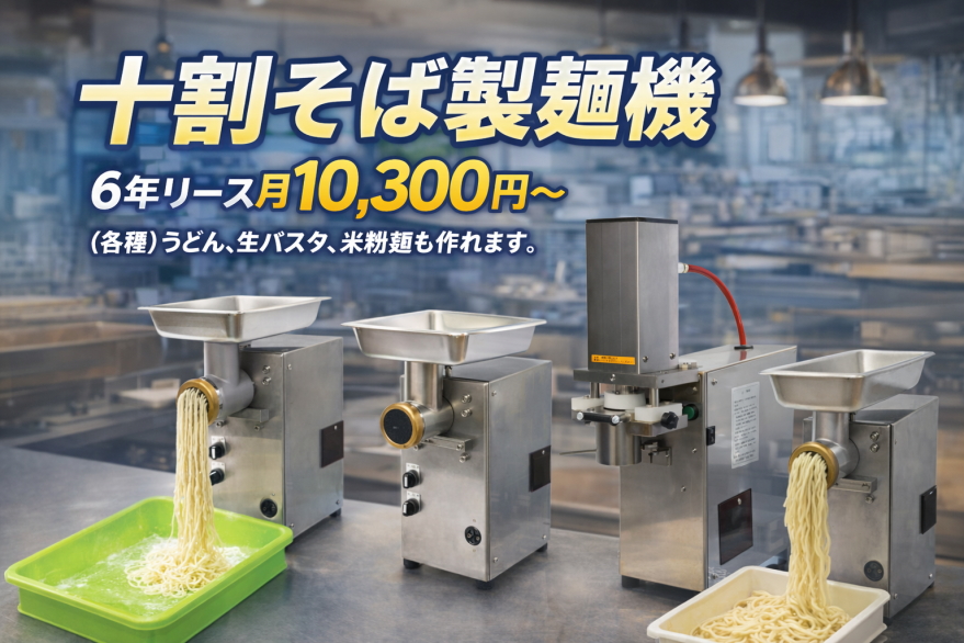 定価1,500,000円(税抜)本体+製麺指導費等、全てコミコミで6年リース、月々27,400円(税別)1日あたり913円位(÷30日)