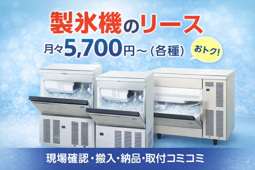 製氷機のリース販売。訪問打合せ、搬入設置工事、既存品撤去処分も…すべてコミコミで月々5,400円~、ホシザキ、パナソニック製品です。