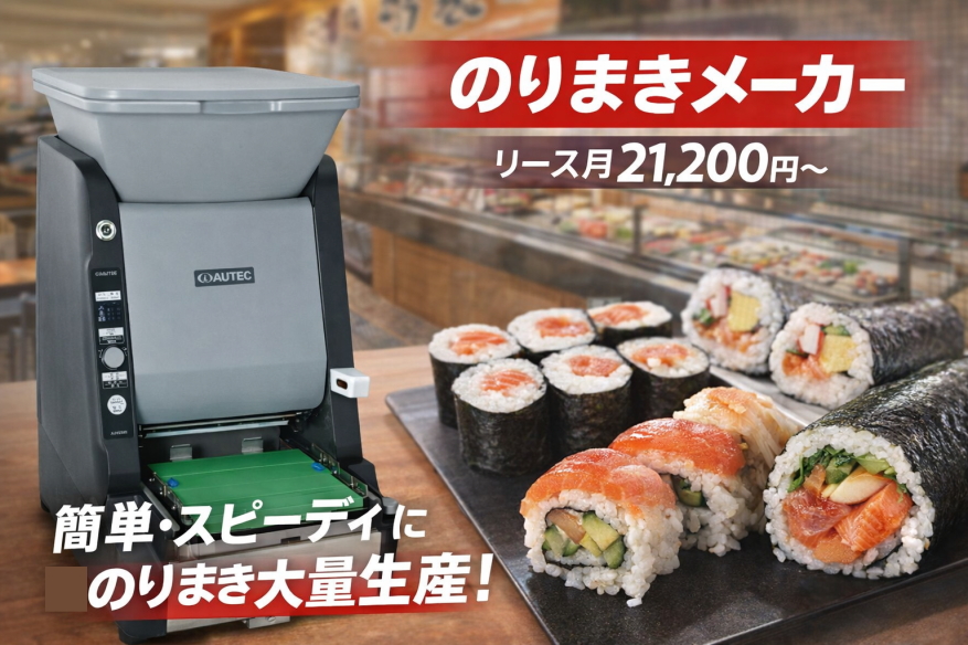 オーテックは精密機器の国内のトップメーカーです。当社ではオーテックのすしロボットやのり巻き機を25年販売していますが故障やクレームもほとんどありません。また修理のときは代替機の対応で安心です。